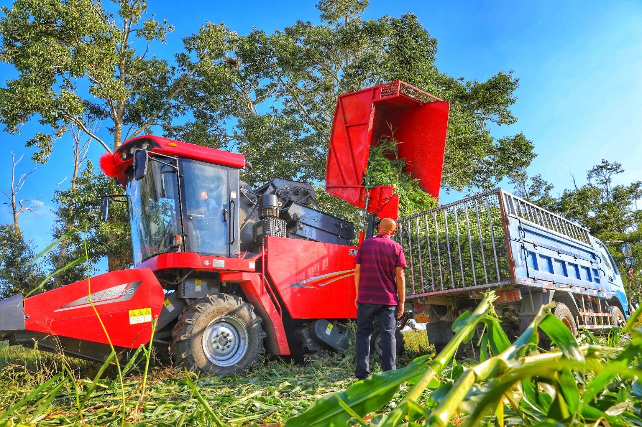 在白海子镇小东号村,一排排玉米植株挺拔整齐,一穗穗玉米棒颗粒饱满,农机手驾驶着大型玉米收割机在垄间穿梭,玉米被快速收割、输送到田边,几名工人将玉米批量装筐、搬上运输车。