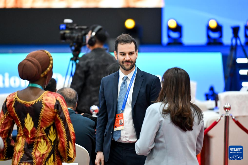 9月16日,参会人员在第十届库布其国际沙漠论坛开幕式前交流。