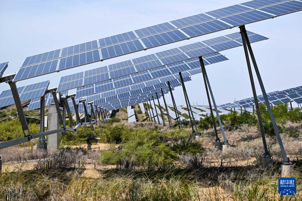 新华社呼和浩特9月17日电(记者赵泽辉)九月的库布其沙漠,蓝色的光伏板在阳光下熠熠生辉,如同一片科技海洋在金色沙海中延伸。在光伏板的阴影下,绿色的植被正茁壮成长,沙柳、柠条等耐旱植物形成了天然的“绿色地毯”。这就是中国正在采用的“光伏+治沙”模式,一个让荒漠变绿洲、让阳光变财富的绿色发展新引擎。