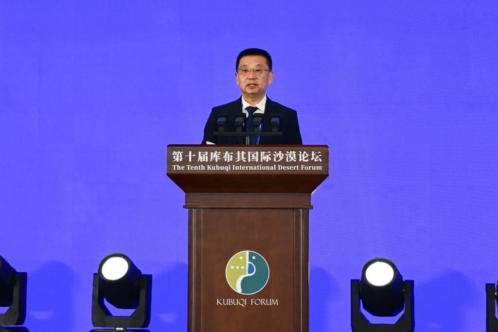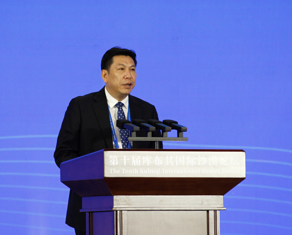 9月16日,国家林业和草原局荒漠化防治司司长黄采艺主持主旨论坛。(李爱武 摄)