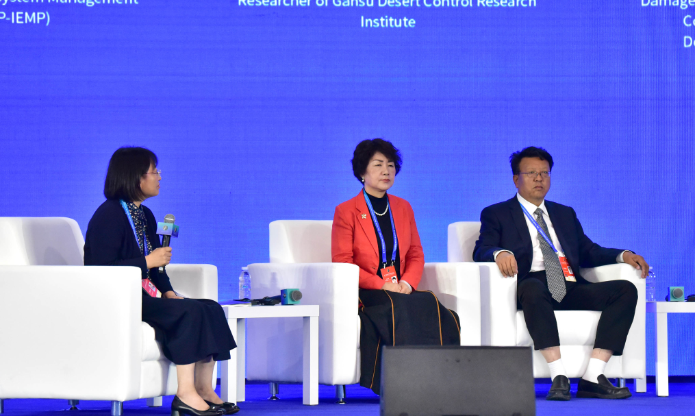 9月16日,国家林业和草原局荒漠化防治司副司长贾晓霞(左一)主持对话。(吴潇莹 摄)