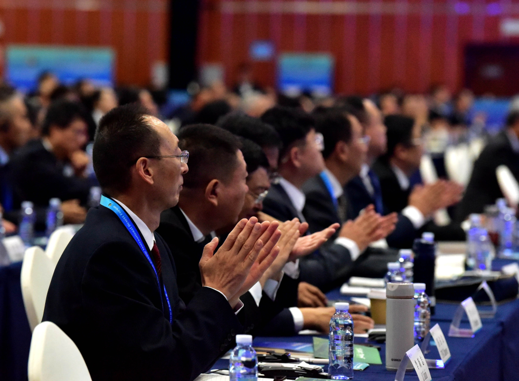 9月16日,与会者在第十届库布其国际沙漠论坛上听取报告。(吴潇莹 摄)