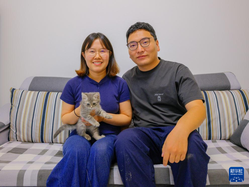 这是9月16日在内蒙古额尔古纳市拍摄的宝金财(右)和妻子娜仁毕力格。新华社记者 马金瑞 摄