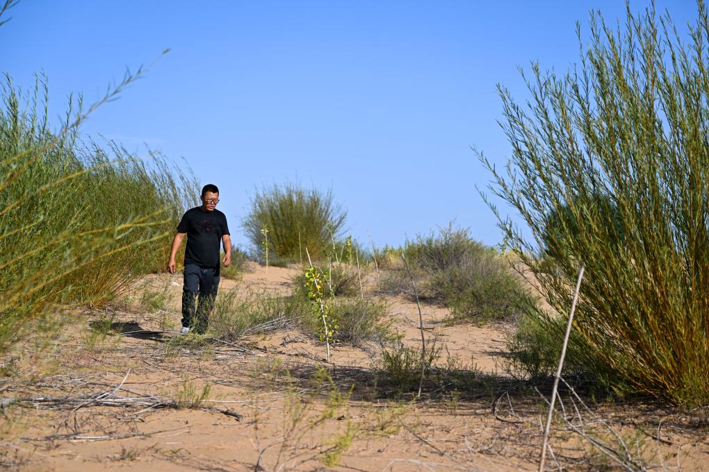 “我是从1997年修建第一条穿沙公路的时候开始治沙,那时候有些不情愿,想着沙漠里能种树?能修路?这不是开玩笑吗?那时候只想着逃离沙漠。”敖特更花回忆说,随着第一条公路修通,路两侧的树开始有了绿叶,她的观念开始发生根本转变。