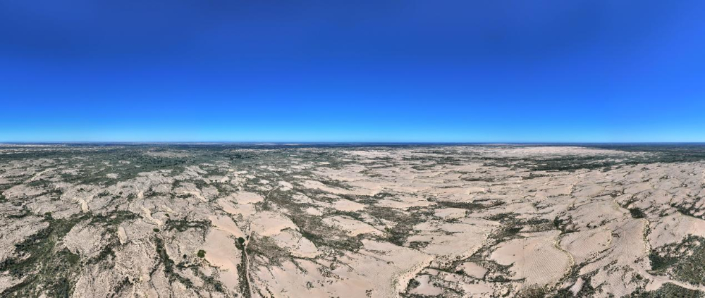 航拍兴安庄村科尔沁沙地综合治沙项目区。新华网发(张伟 摄)