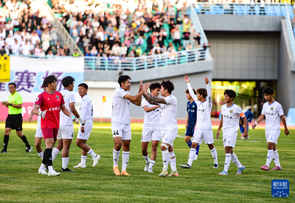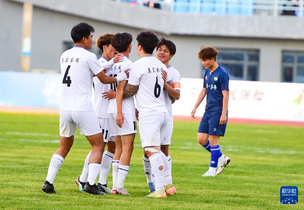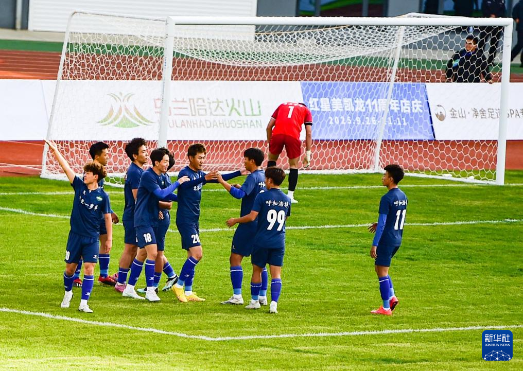 9月20日,呼和浩特球员在进球后庆祝。(康文魁 摄)