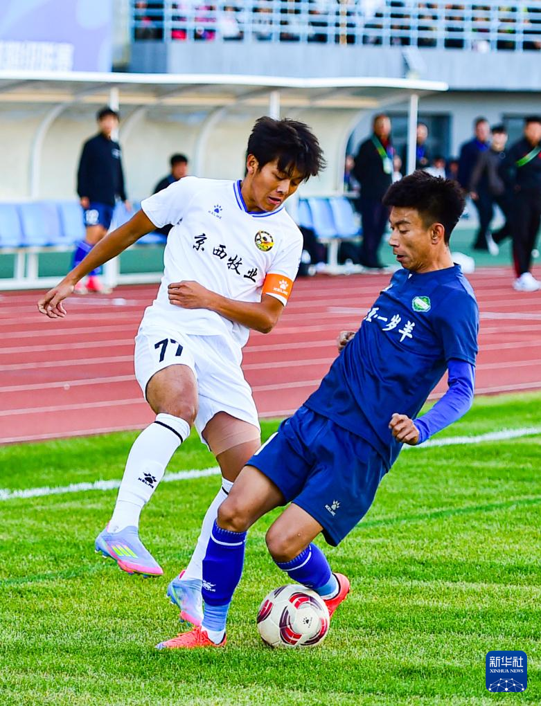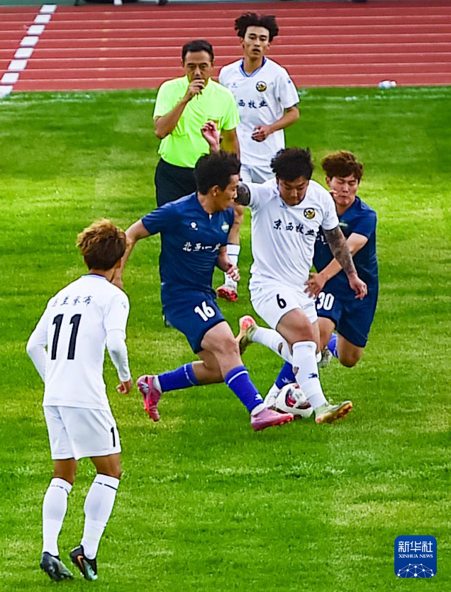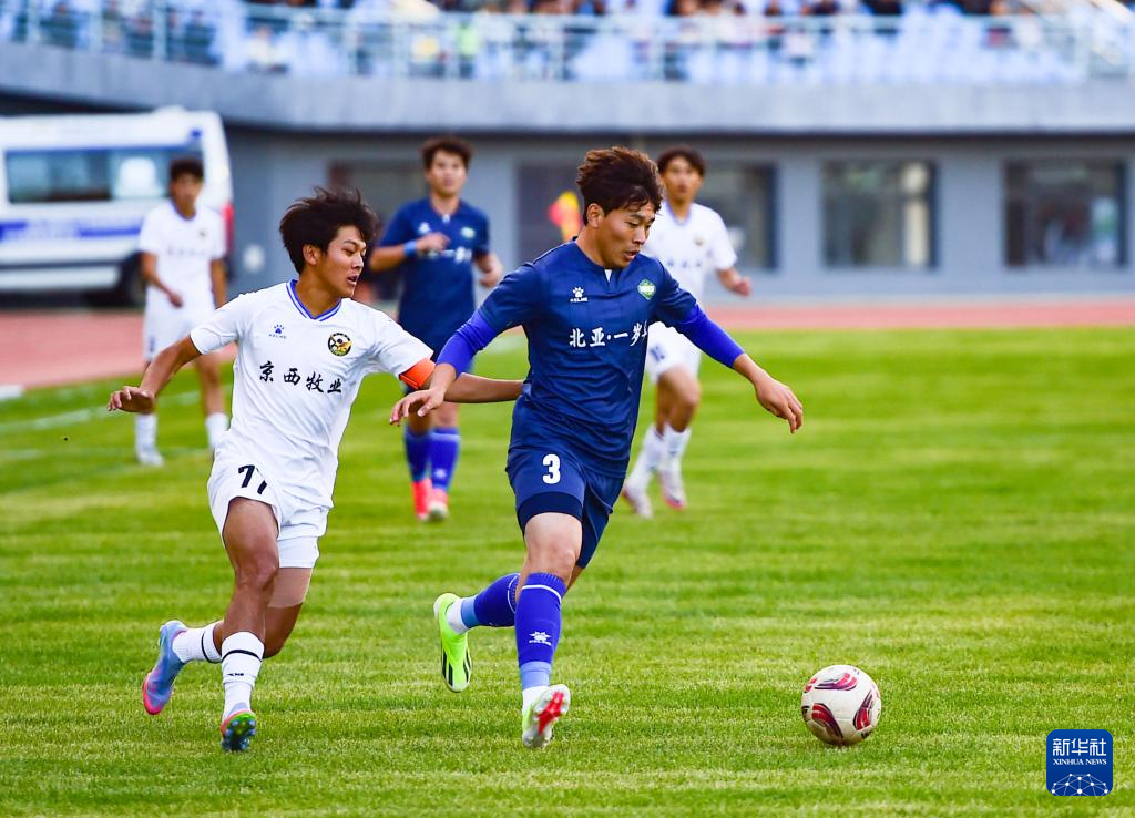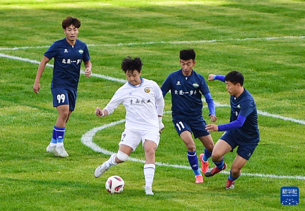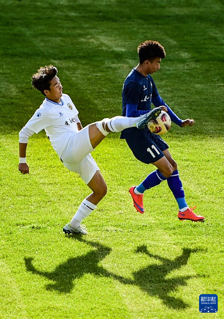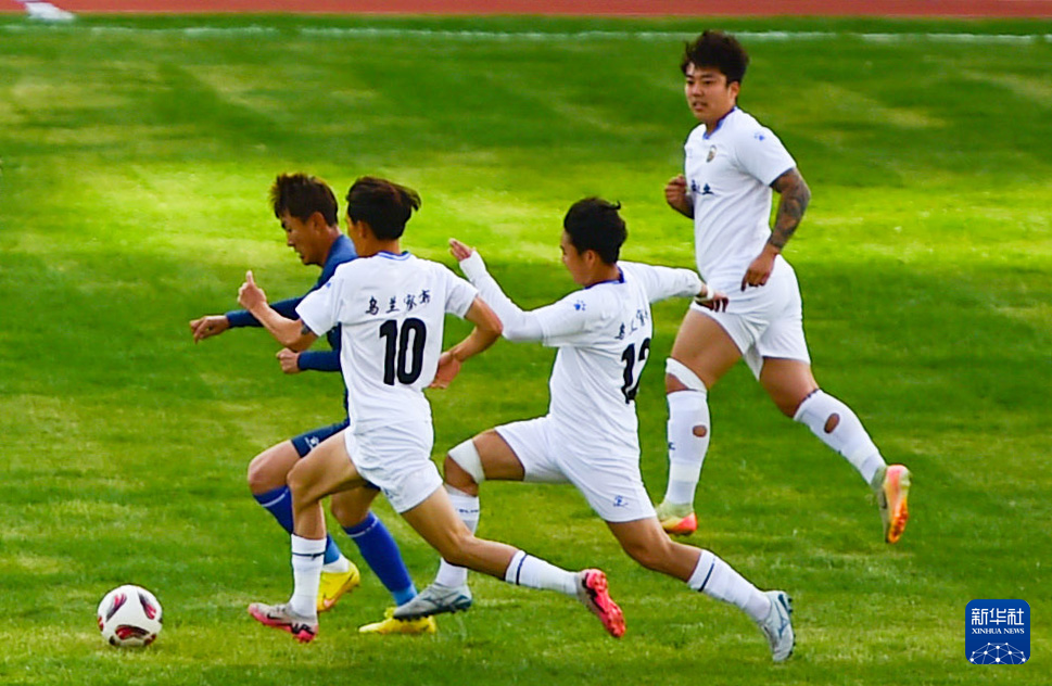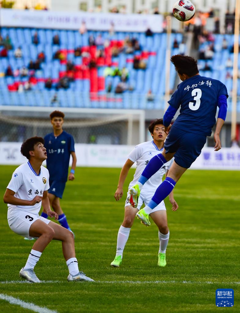 9月20日,呼和浩特队球员在比赛中争顶头球。(康文魁 摄)