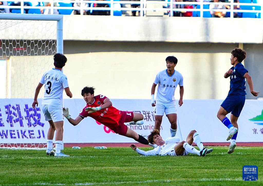 9月20日,乌兰察布队守门员在比赛中扑球。(康文魁 摄)