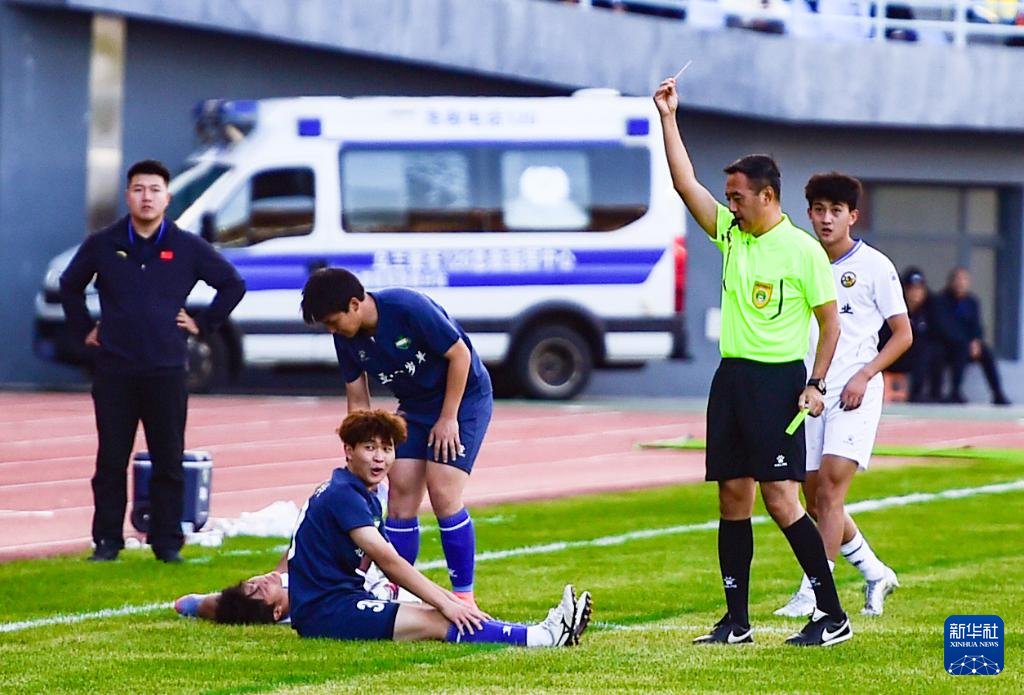 9月20日,裁判员在比赛中向犯规球员出示红牌。(康文魁 摄)