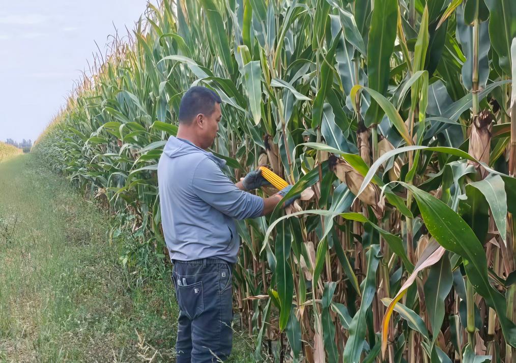 在赵魁家的玉米地里,一株株2米多高的玉米秆茂密挺立,一个个20多厘米长的玉米棒颗粒饱满。赵魁一边掰开玉米棒查看长势,一边告诉记者:“今年我把200亩地全部按照小麦套种玉米模式种植,预计每亩产600斤小麦、1400斤到1600斤玉米,综合收益比单种小麦或者玉米增加5%以上,实现一地两种、一亩多收。”