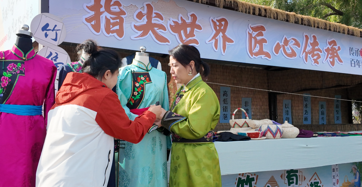 科右前旗柳树川村邻里文化大集上的非遗摊位。