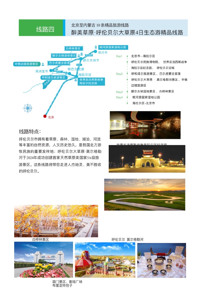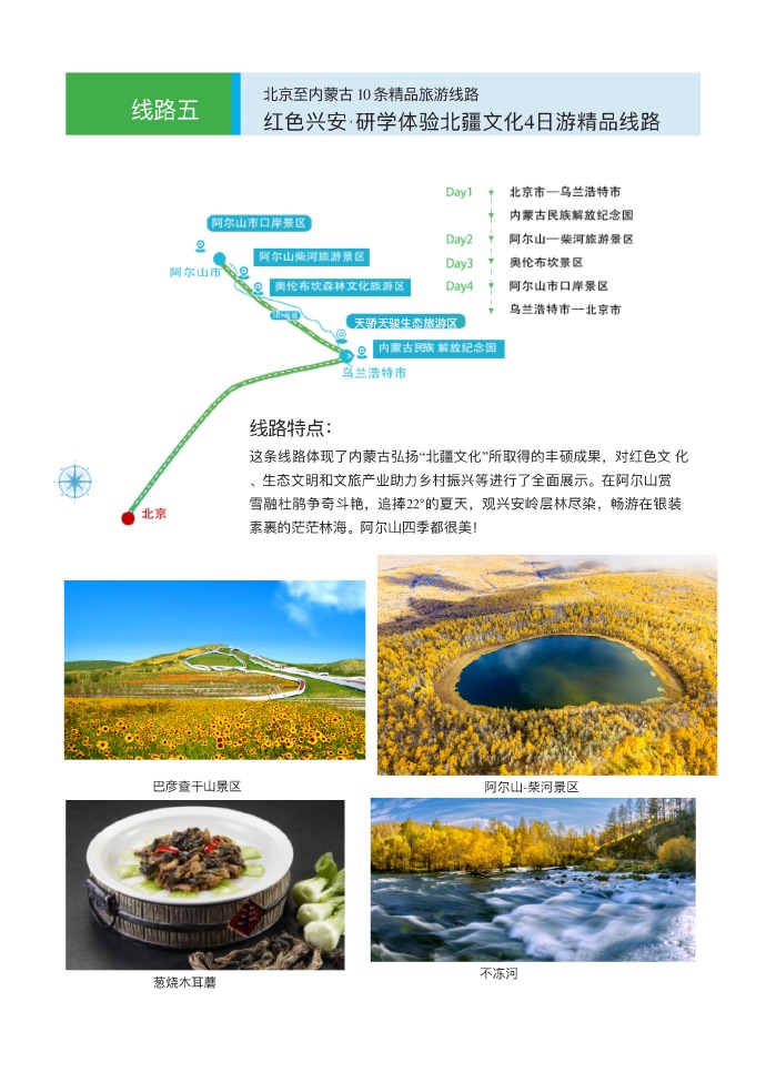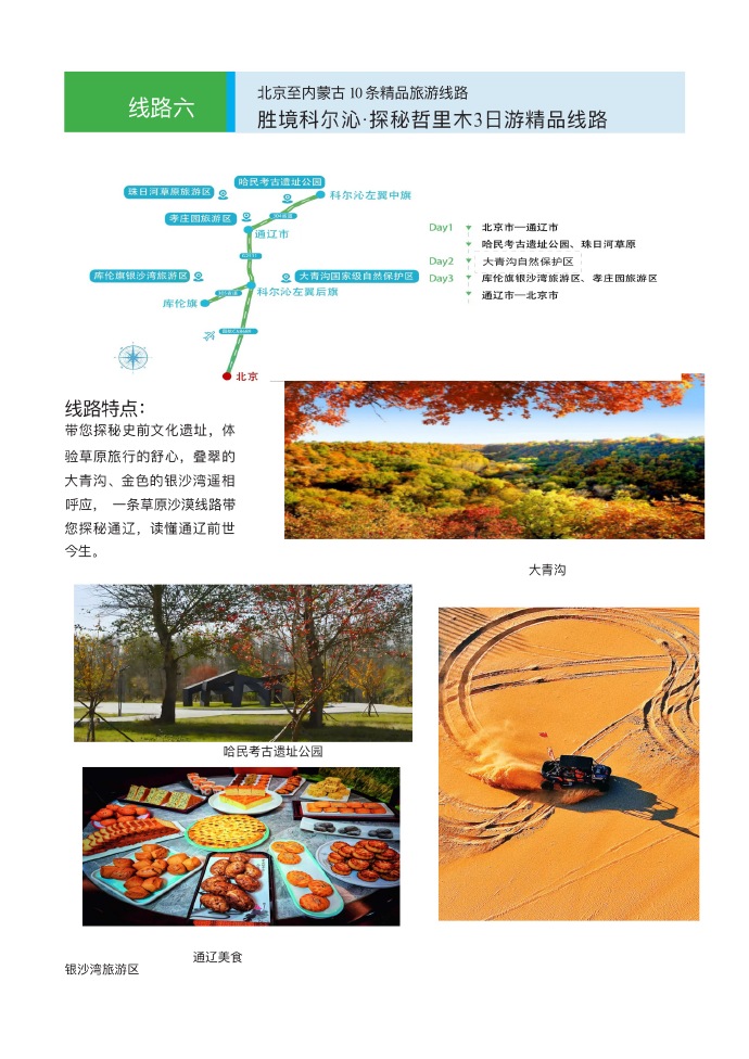 新华网呼和浩特9月26日电(徐红梅)国庆中秋双节临近,内蒙古自治区文旅厅发布10条北京至内蒙古精品旅游线路,串联草原、林海、沙漠、古城与工业遗址沉浸体验。