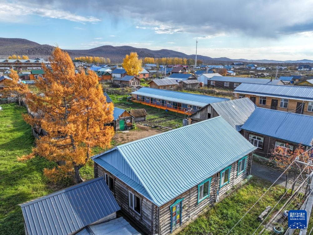 这是9月29日在内蒙古呼伦贝尔市额尔古纳市恩和俄罗斯族民族乡拍摄的孙运梅家的民宿与餐馆“丽丽娅之家”(无人机照片)。