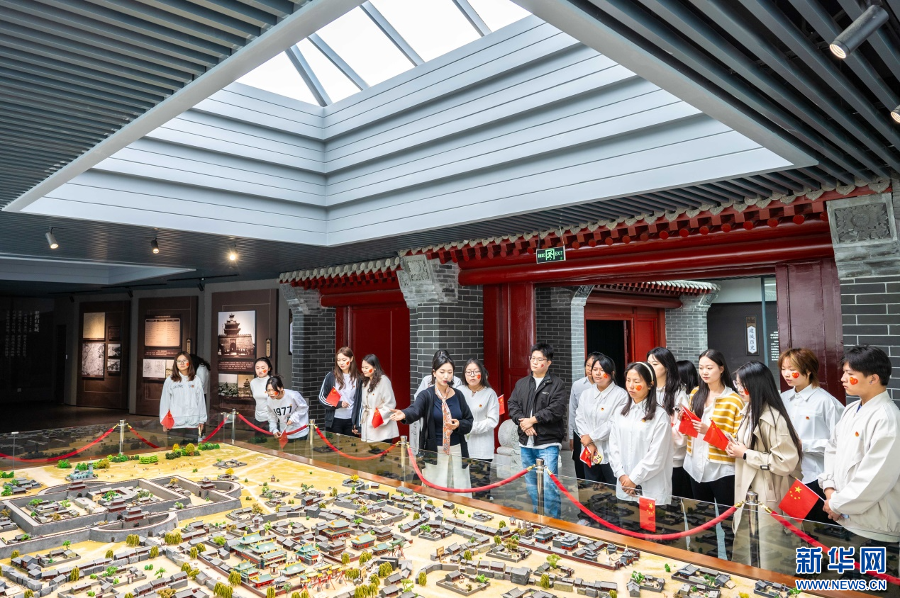 10月1日,内蒙古师范大学马克思主义学院的学子们在归化城展示馆参观研学。新华网发(丁根厚 摄)