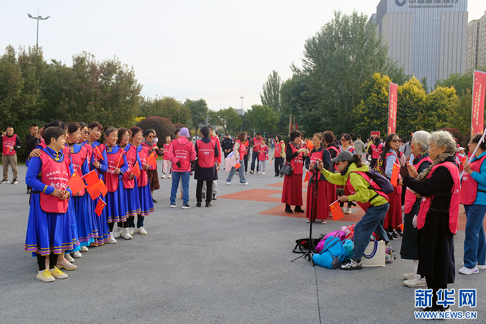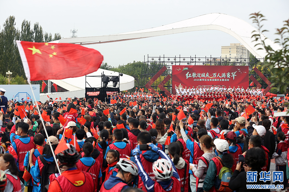 10月1日上午,“红歌庆国庆·万人游赛罕”2025赛罕区全民庆国庆主题活现场。新华网 石毅 摄
