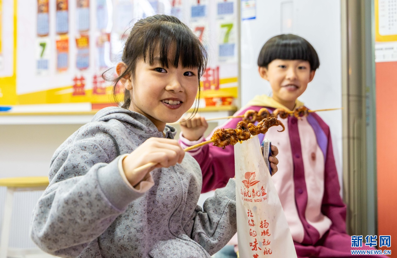 10月1日,呼和浩特市玉泉区塞上老街旅游休闲街区,游客在体验吹糖人。新华网发(丁根厚 摄)