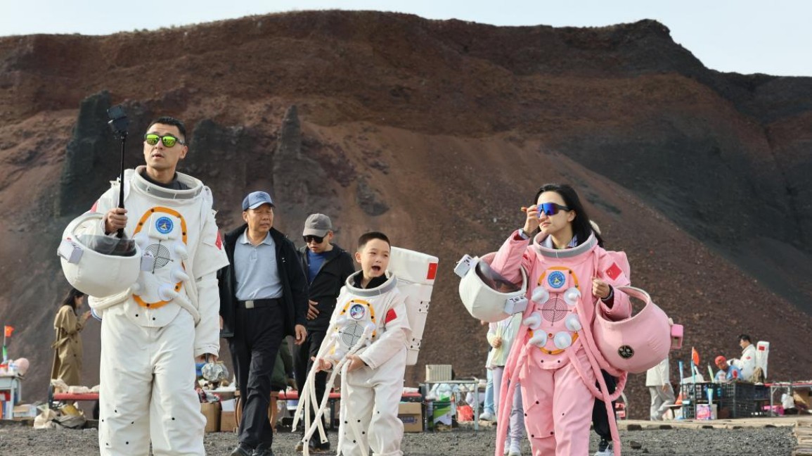 国庆期间,乌兰哈达火山景区推出“火山映红旗・盛世共欢庆”系列活动,火山红歌快唱、“人机共舞”表演、“一杯暖茶融心意”等深受游客喜爱。围绕“爱国仪式感+多元互动体验”主线,景区通过环境氛围营造、内容设计与传播引导,为游客构建沉浸式节日场景,传递家国情怀与民族团结主题。