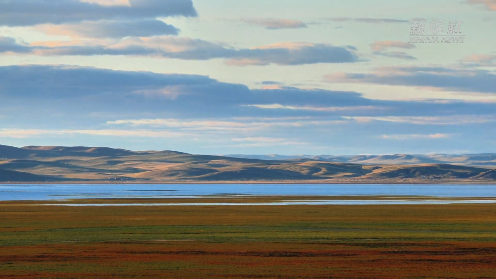 湖面像块被岁月打磨的蓝宝石,映着高远的云天与岸边泛黄的牧草。