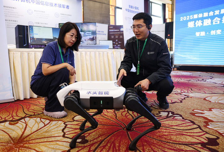 作为年会重要环节,“媒体融合技术展”以“智融·创变·未来”为主题,成为技术赋能媒体变革的直观窗口。华为OceanStor Pacific 9928全闪存储适配媒体全流程,破解数据存储调用难题;Atlas 900 A3 SuperPoD满配300 PFLOPS算力,为融媒体智能化注入强劲动力;中兴通讯“5G-A VR大空间”方案,以高速网络与沉浸式技术构建智媒传播新底座;中国经济信息社与中国电子云联合研发的新华财经专业终端,依托“算力+模型+数据+平台+应用”全栈式AI架构,打造软硬件集成的场景化解决方案。从“新华妙笔”“新华较真”智能工具,到北大方正“方正云雀”融媒体平台串联全流程数字化生产,25家权威机构与领先企业的技术成果集中亮相,不仅展现单点技术突破,更勾勒出“协同共生、全链赋能”的媒体融合产业生态,印证媒体融合已迈入“软硬一体、效能升级”新阶段。