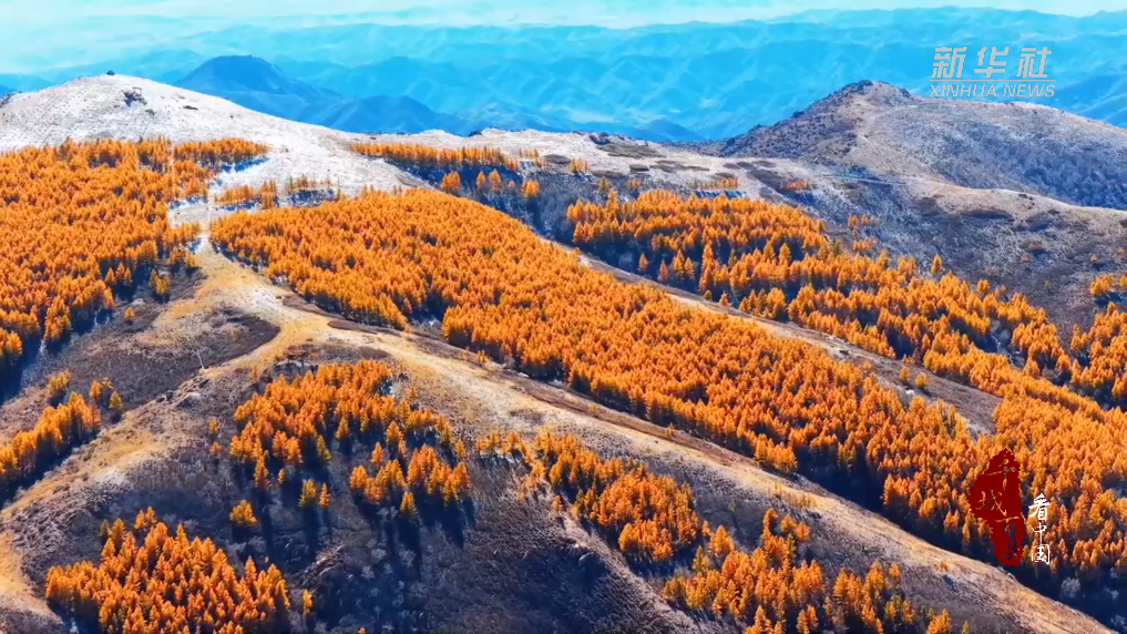 金秋十月,位于内蒙古自治区包头市石拐区的大青山国家级自然保护区,正上演着秋日与冬雪的邂逅。