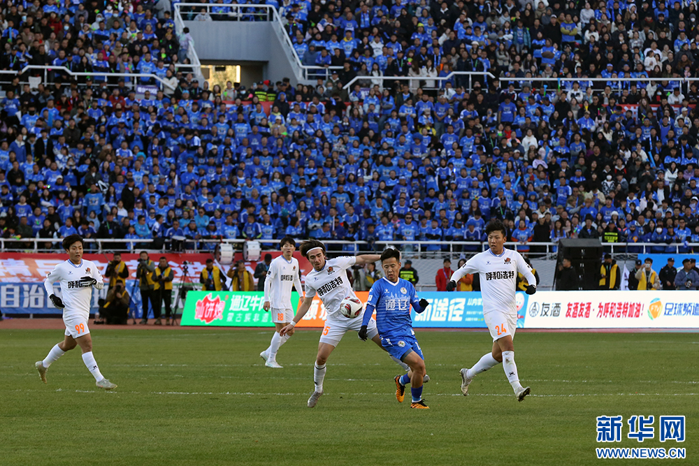 10月25日,呼和浩特队球员与通辽队球员在比赛中拼抢。新华网 石毅 摄