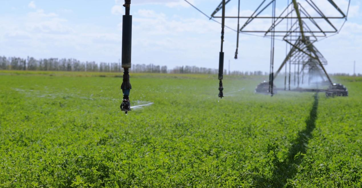 圣牧草业有机种植园区喷灌系统。