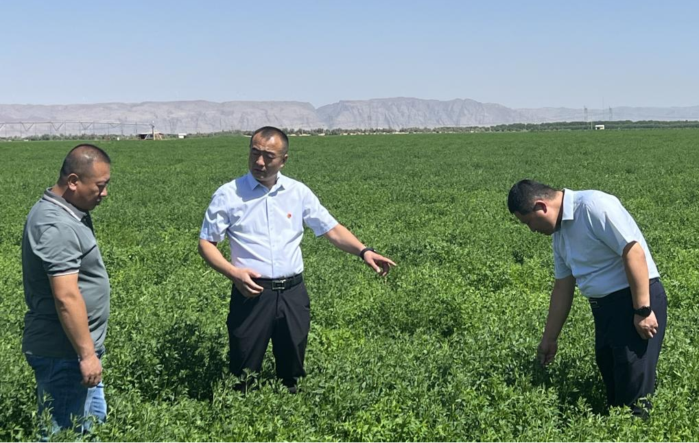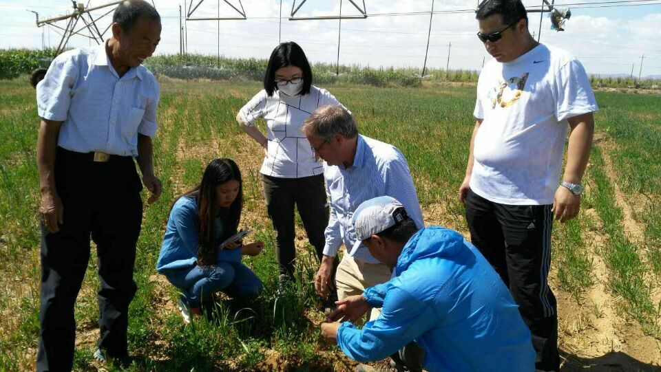 圣牧草业专家在有机种植园现场调研。