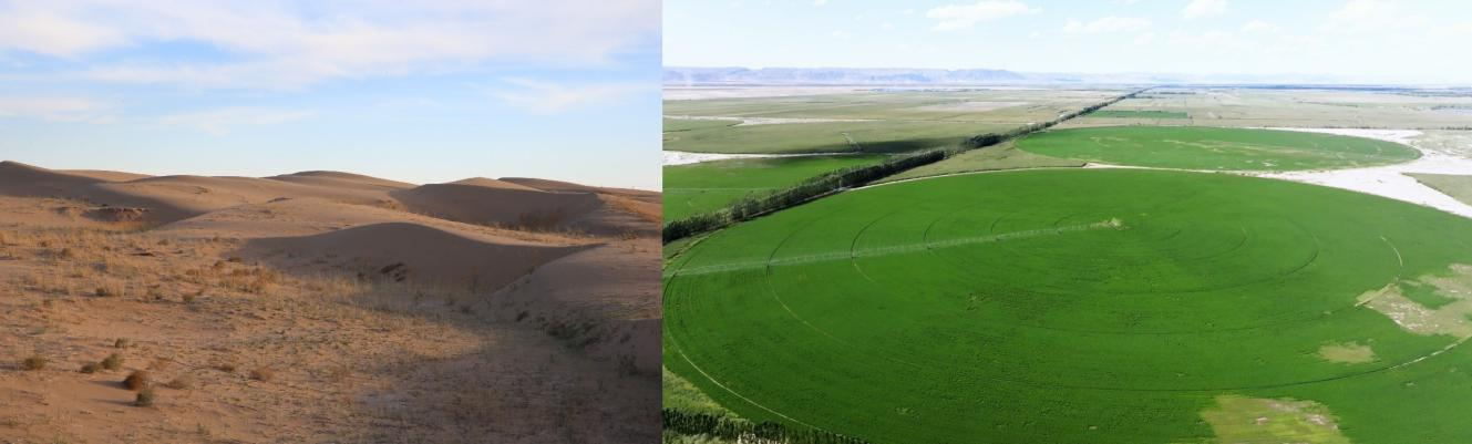 圣牧草业入驻乌兰布和沙漠后生态的改变。