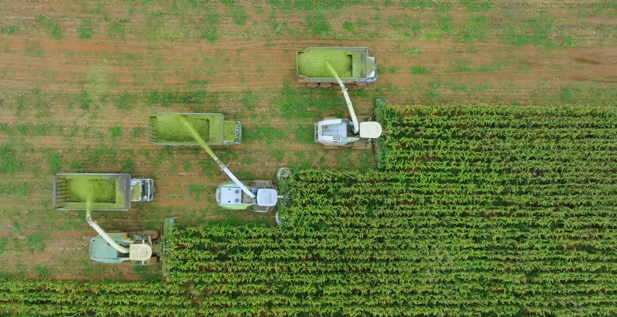 圣牧草业有机种植园有机青贮玉米收割。