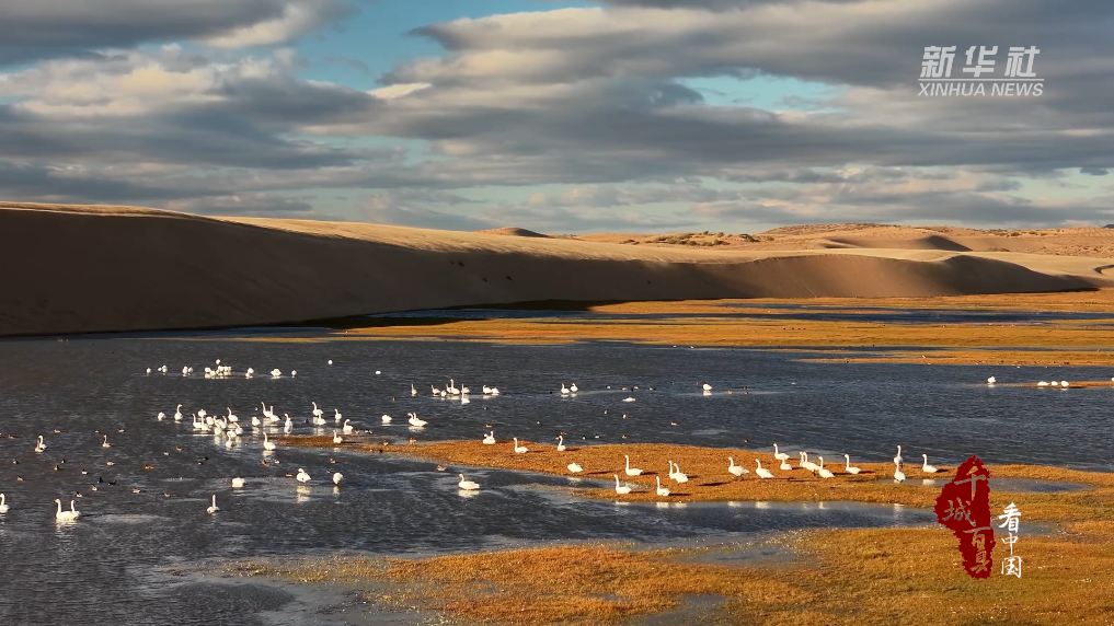 深秋时节,在内蒙古自治区赤峰市巴林右旗大板镇翁根毛都嘎查,一片碧蓝的湖泊镶嵌在沙海之中,成为候鸟迁徙途中的温暖驿站。晨光洒落湖面,阵阵清脆的鸟鸣回荡在沙海绿洲间。成群的候鸟或展翅翱翔,或悠然游弋,为静谧水域平添无限生机。在这片神奇的土地上,沙漠的苍茫与湖泊的柔美完美交融,翩跹的候鸟更为广袤天地注入了无尽诗意,凝成秋日沙海最动人的记忆。