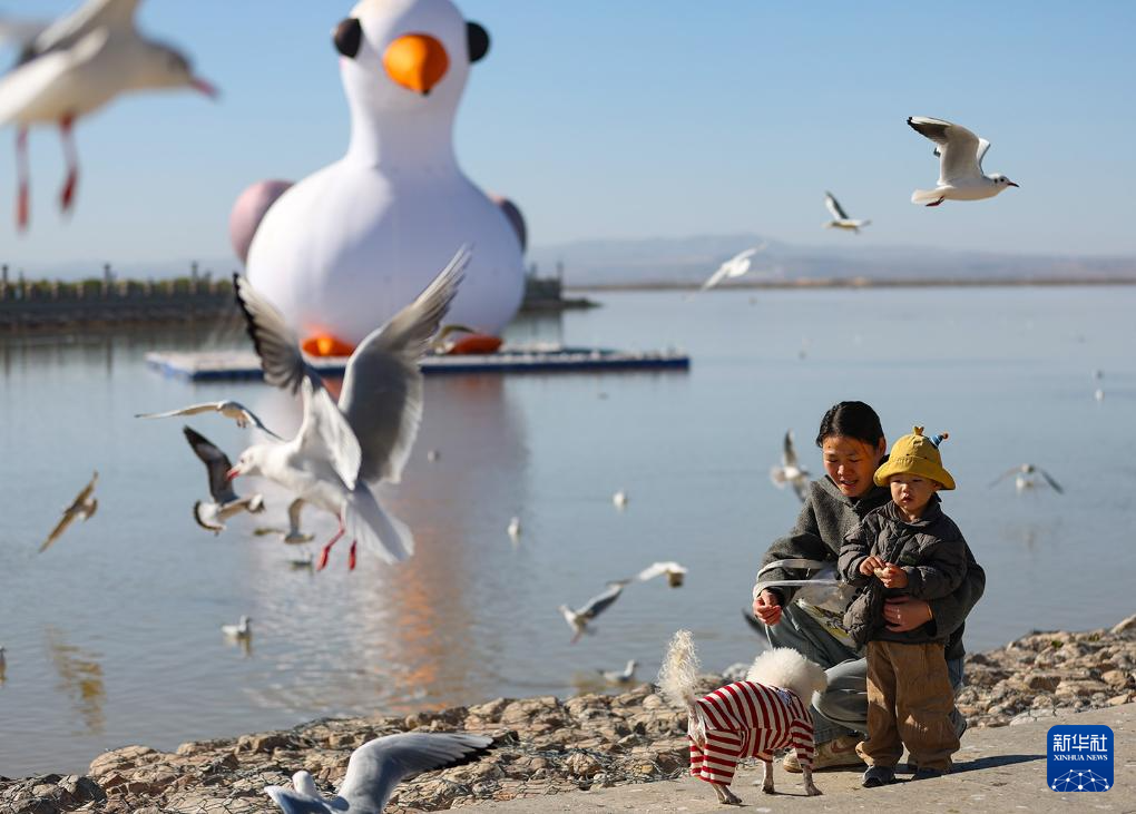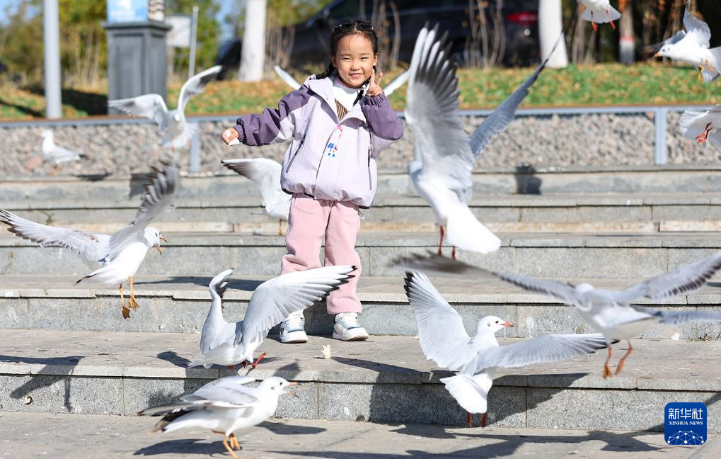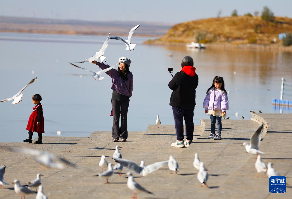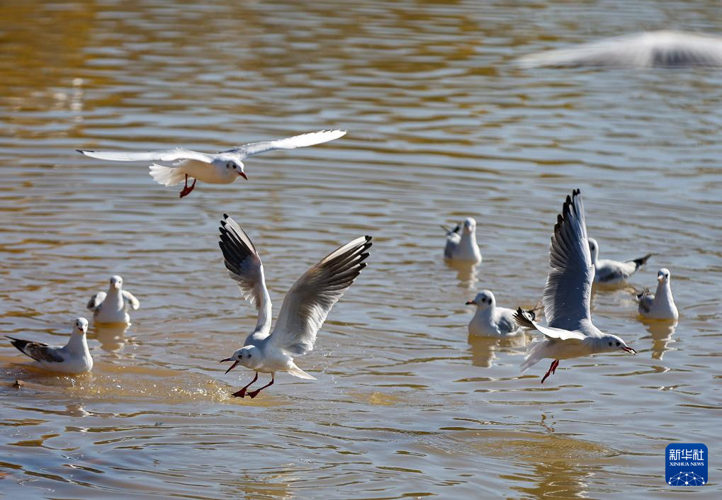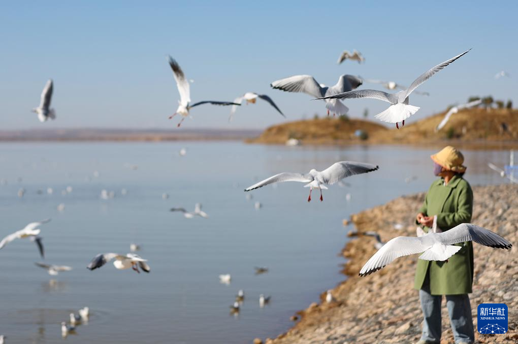 深秋时节,大批南飞越冬的红嘴鸥在内蒙古乌海市境内的乌海湖驻足觅食、栖息,引来众多市民游客前来观赏并与之互动,绘就人鸥同乐的靓丽风景。近年来,随着乌海湖及周边生态环境持续向好,途经这里的候鸟数量和种类逐年增加。(康文魁 摄影报道)