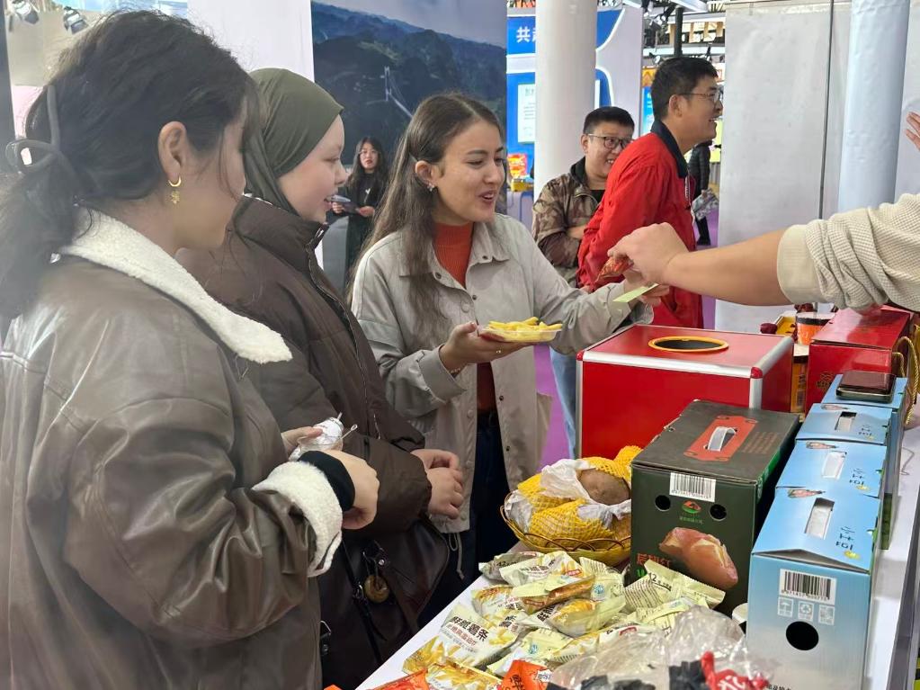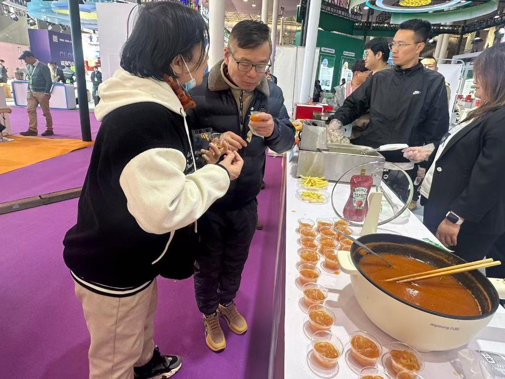 在加工产品展区,淀粉、全粉、薯条、薯片、薯泥、马铃薯月饼、酸奶饼、马铃薯醋等琳琅满目的精深加工产品,全面呈现乌兰察布马铃薯从田间到餐桌的全链转化能力。特别是“原味乌兰察布”区域公用品牌旗下的“薯都薯”“嘟嘟薯”法式低温油浴系列产品,以健康、低脂、零添加为特色,生动诠释“原滋、原香、原生态”的品牌理念,赢得荷兰、法国、哈萨克斯坦、埃及、伊朗等多国采购商的高度评价。他们纷纷称赞:“乌兰察布马铃薯‘原料优质、工艺精湛、口感出众!’”。哈萨克斯坦客商阿拜·库南巴耶夫表示,将积极对接乌兰察布马铃薯种薯资源,并计划引进薯条生产线,推动“乌兰察布马铃薯”沿丝绸之路香飘中亚,走向世界。