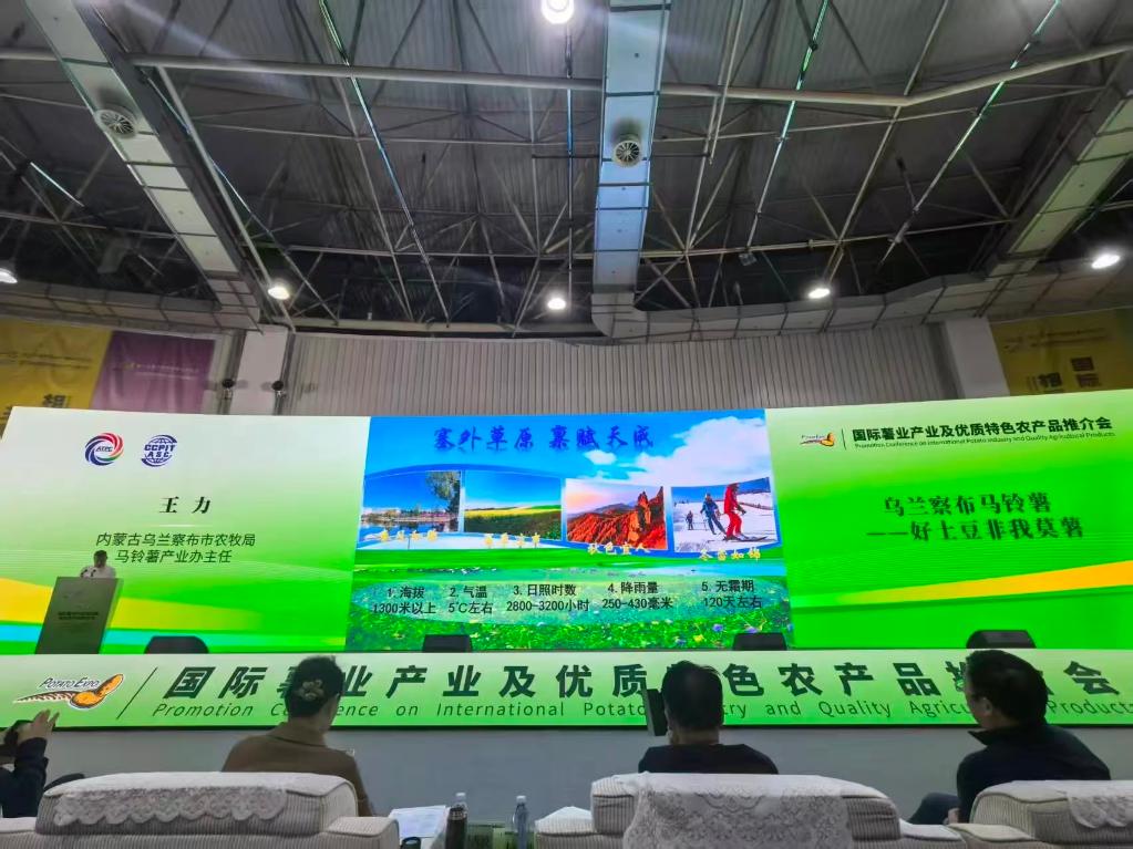 展会期间,乌兰察布市农牧局举办“乌兰察布马铃薯——好土豆非我莫‘薯’”专题推介会,乌兰察布市农牧局马铃薯产业办主任王力围绕良种繁育体系、中加技术合作、精深加工、仓储物流和品牌建设五大板块进行系统介绍与深度解读,受到与会领导与行业专家的高度肯定,对乌兰察布市农牧局推动马铃薯全产业链高质量发展所取得的成就表示赞赏。