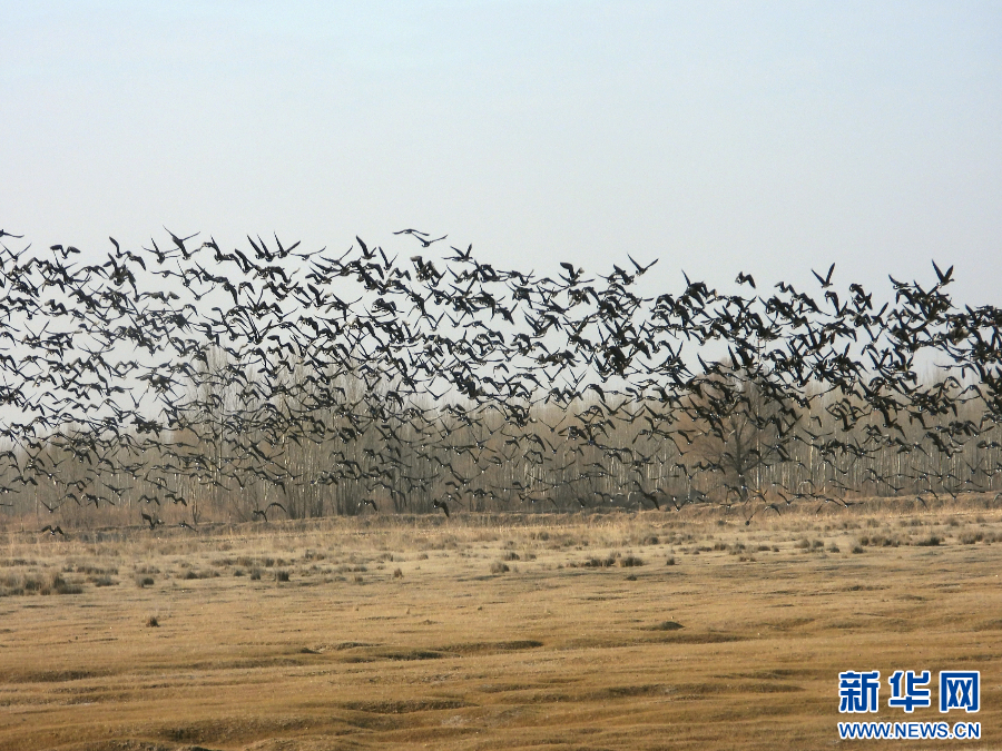 阿鲁科尔沁旗巴拉奇如德苏木迎来大批豆雁。新华网发(赤峰市林草局供图)