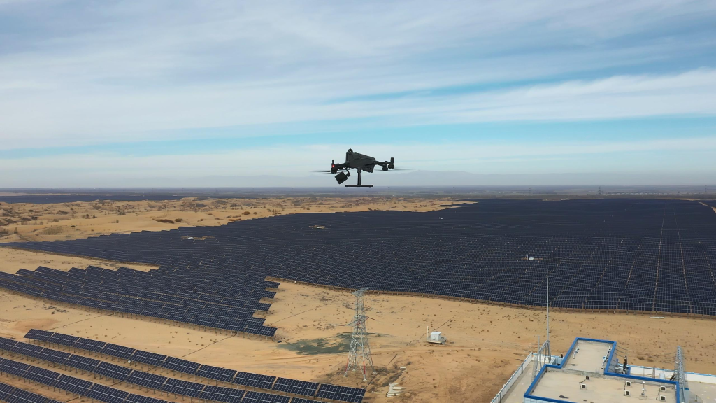 在库布其沙漠的多个新能源场站,三峡集团引入了大疆机场和无人机,无人机智能巡检不仅解放了人力、大幅提高了巡检效率,也保障了巡检的精准度,识别故障准确率达95%以上。