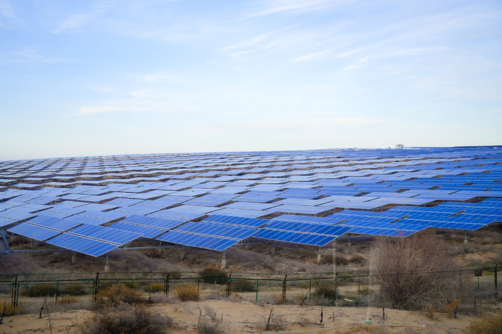 在内蒙古库布其沙漠鄂尔多斯中北部新能源基地,百万块湛蓝色的光伏板阵列在金色沙海中绵延起伏,宛如一片“蓝色海洋”。这条宽度约5公里的“光伏长城”在沙海中筑起一道绿色屏障。但这背后却面临着不小的运维挑战。