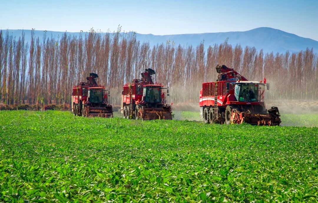 “有了前两年的工作经验,我们熟悉了新疆的气候特点、地块条件,能够快速调整设备状态投入作业。三台机械每天可稳定收获甜菜600亩左右,作业效率较去年同期提升7%。”本次农机服务领队苗玉龙介绍。