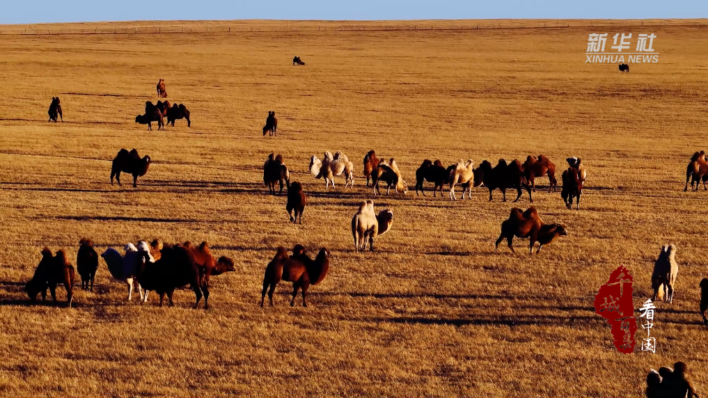 当夕阳把锡林郭勒草原染成金箔色,驼群踩着余晖缓缓踱步。坚挺的驼峰载着岁月的从容,时而抬眼望穿天际,时而低头轻吻牧草,每一步都踩在安逸的节奏里。