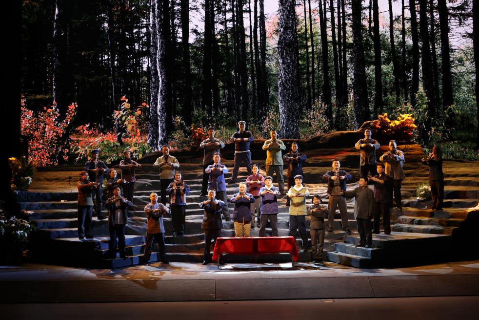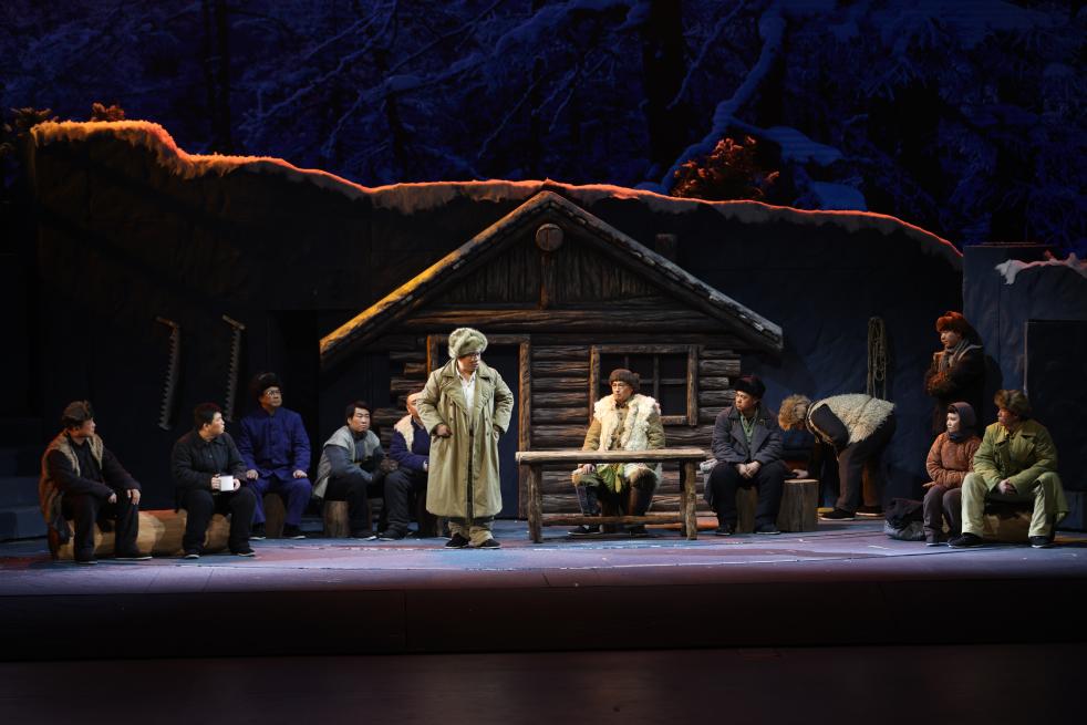 作为2023年自治区舞台艺术精品扶持剧目、内蒙古自治区第十六届精神文明建设“五个一工程”优秀作品奖的佳作,《父亲·大兴安》以大兴安岭林区70余年发展改革史为主线,聚焦几代务林人从“砍树人”到“护林人”的角色转型,生动刻画了林青山、曹大顺等鲜活人物形象,再现务林人扎根林海、爬冰卧雪的奋斗历程,诠释生态文明理念与无私奉献精神。剧中写意化舞台布景、生活化方言台词与感染力十足的“倒山号子”交织,搭配冬春夏秋时空流转的叙事设计,既还原了林区建设岁月的艰辛,又融入了呼伦贝尔地区民俗特色,让观众沉浸式感受到务林人“能做擎天的柱,就做擎天的柱”的赤诚担当。