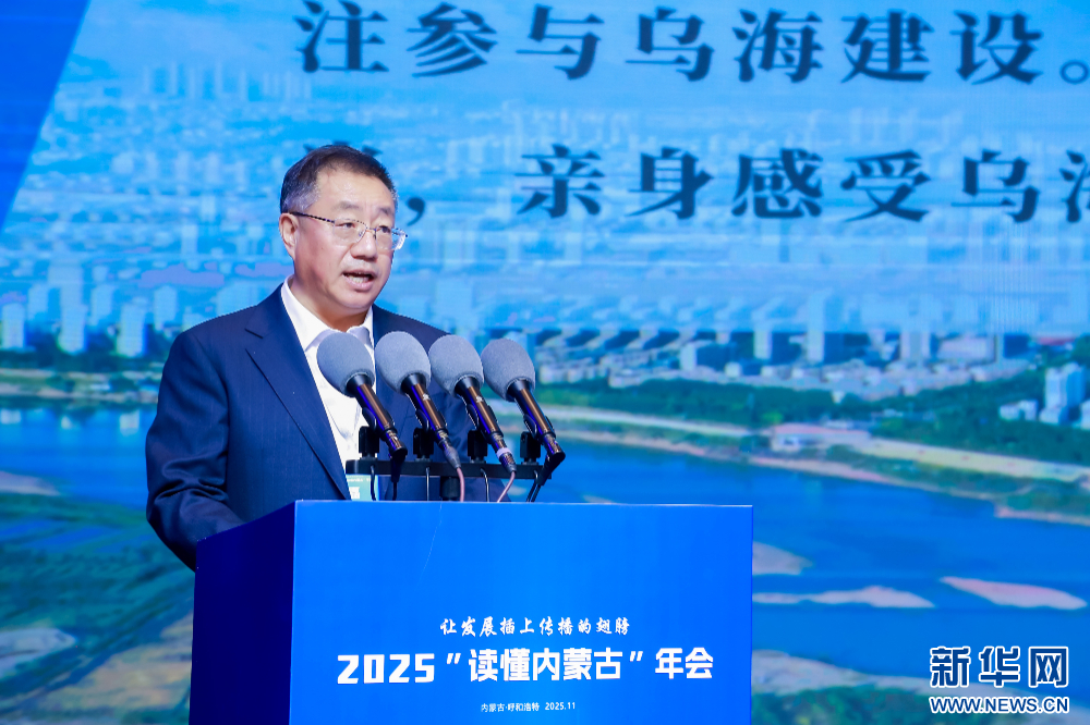 11月29日,乌海市委常委、宣传部部长孟培云在2025“读懂内蒙古”年会上作城市主题推介。新华网发