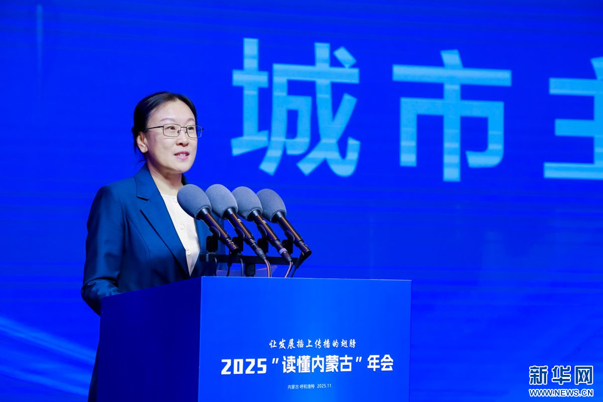 赤峰市委常委、宣传部长乔雪峰在2025“读懂内蒙古”年会上作城市主题推介。新华网 杨腾格尔摄