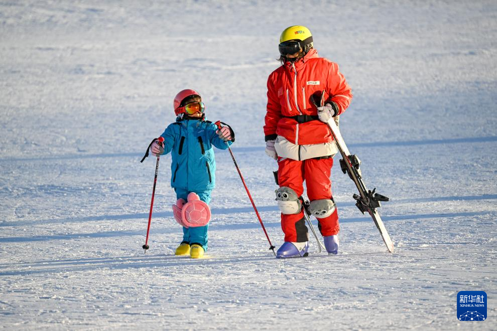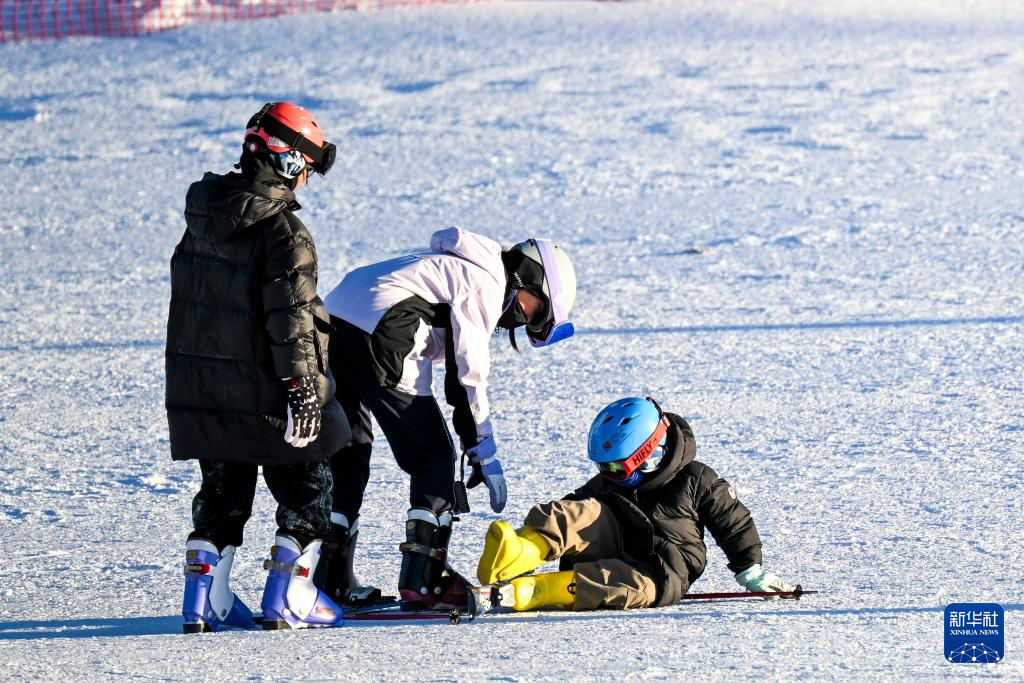 12月7日,滑雪爱好者带领小朋友滑雪。新华社记者 连振 摄