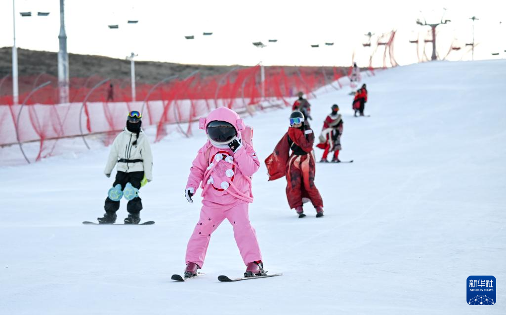 12月7日,滑雪场的教练身着特色服装滑雪。新华社记者 连振 摄