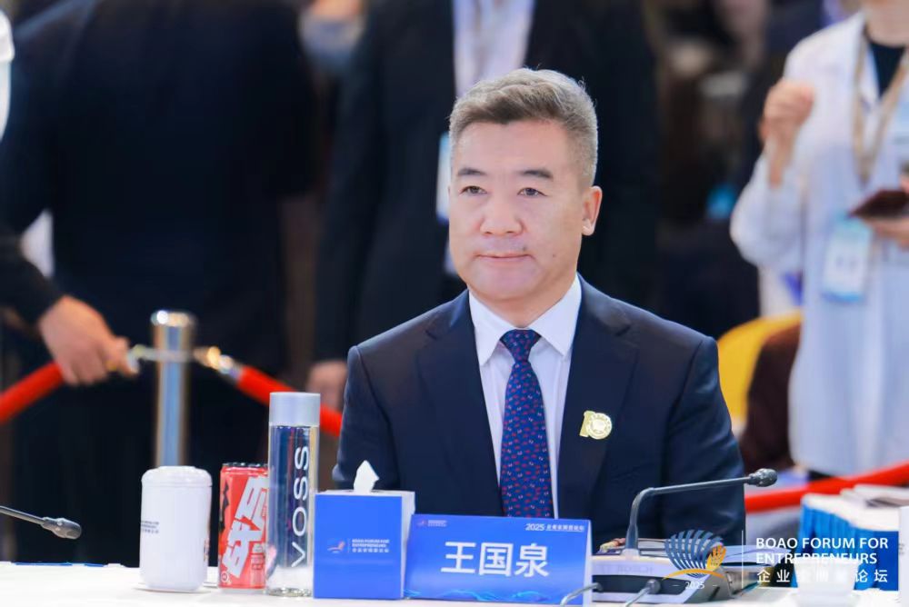 12月4日,在2025企业家博鳌论坛上,准格尔旗委书记王国泉在圆桌会议环节分享资源型地区在时代变革中的探索与实践。新华网发