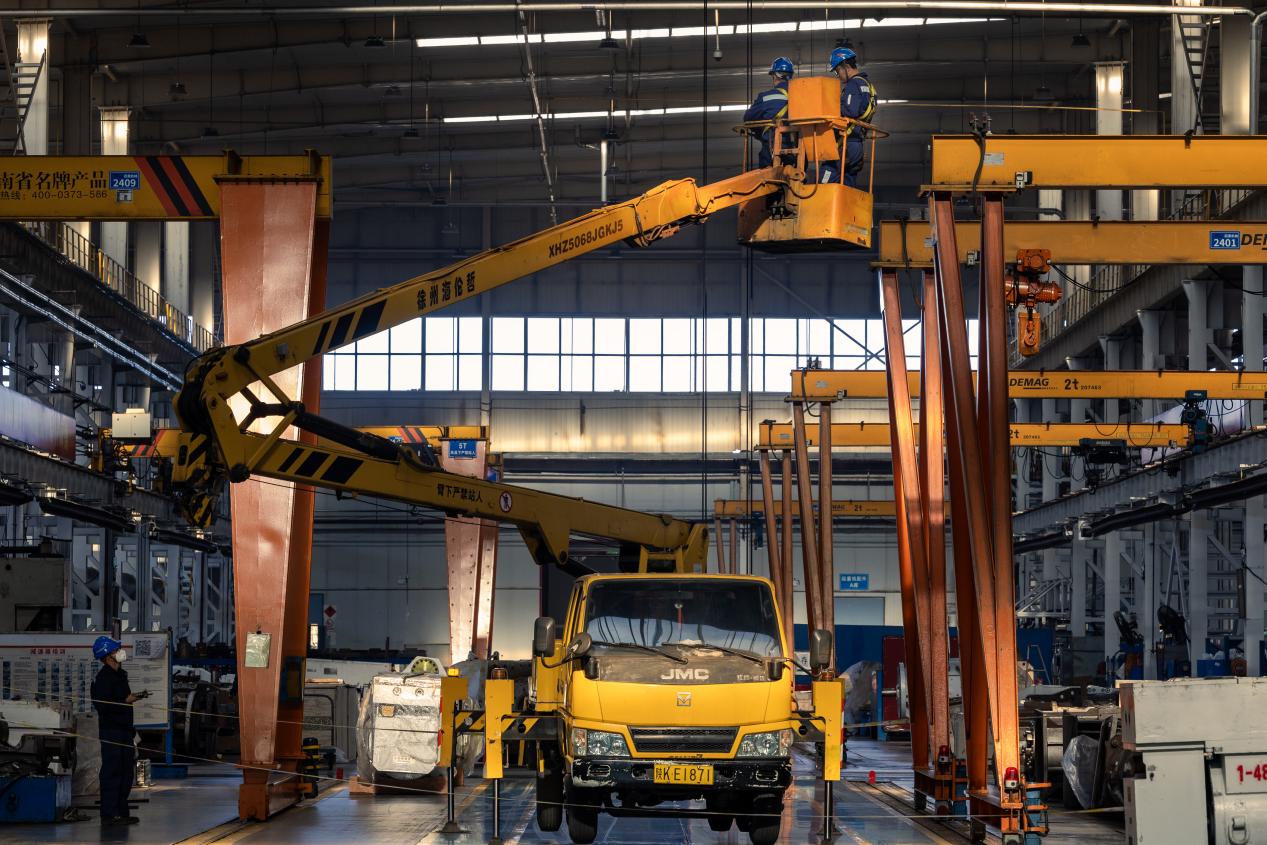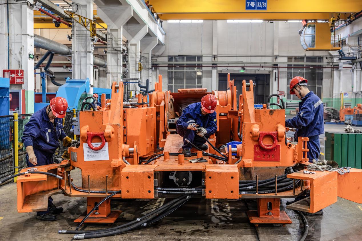 图为设备维修中心维修一厂技术人员正在为掘锚机连接液压管路。面对多项承修任务,该厂科学排产,精细管控,全力保障每台设备按期高质量出厂,满足矿井生产接续需求。(刘长江 摄)