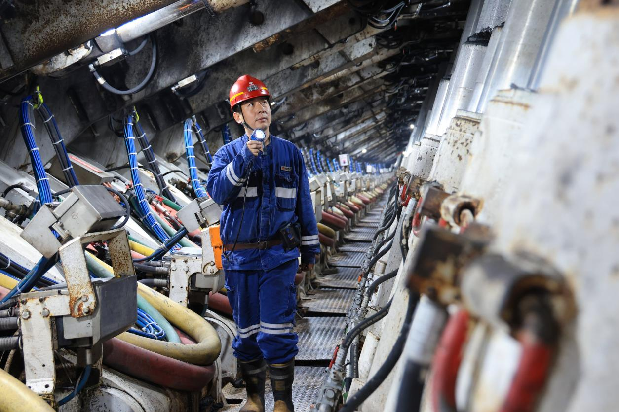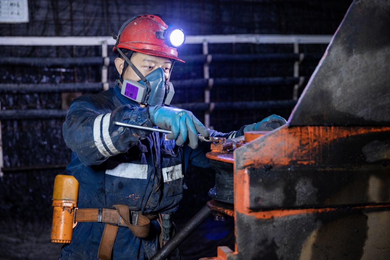 图为大柳塔煤矿综采五队人员正在检查检修后的护帮板。该队持续优化生产组织,推行管理人员包班制,增强团队凝聚力和执行力,为井下安全高效生产提供保障。(刘长江 摄)