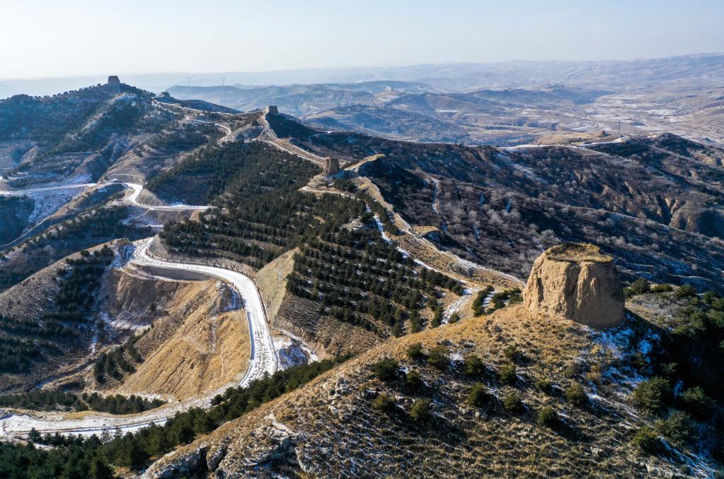 绵延于河套南侧黄土丘陵区的明长城,是内蒙古现存历代长城的精华。明成化、嘉靖年间河套蒙古诸部兴起,明朝统治者执行拒绝通贡互市的“绝贡固守”政策,与蒙古诸部的冲突增多。从成化年间掀起修筑北方长城的高峰,九边各镇“修边”的记载不绝于史,凭边固守成为嘉靖时期北方军事行动的主要内容。明长城以墙、壕为依托,辅助以营、堡、烽火台、敌台、马面等设施,万历年间还对原有工事进行修缮和加固,“城堡以便保聚,墩台以明烽火”,多数城堡墩台在这一时期用砖石加固。呼和浩特市清水河县境内的明长城属明长城中段,保存完整且规模浩大,明长城延续到老牛湾黄河大峡谷,形成黄河与长城“握手”的壮观景象。