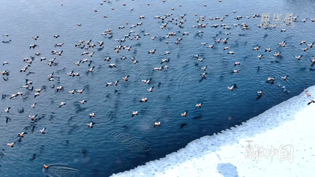 雪地上,成群飞鸟振翅掠过,恰似给这幅雪白画作点缀了灵动的音符,更有流水潺潺,在冰雪间刻画出蜿蜒的曲线,未冻的清波撞击岸边薄冰,溅起细碎的水花,带着清冽的声响。
