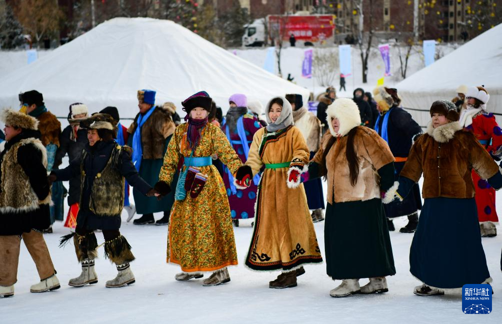 12月20日,参加开幕式彩排的敖鲁古雅鄂温克牧民带领驯鹿入场。