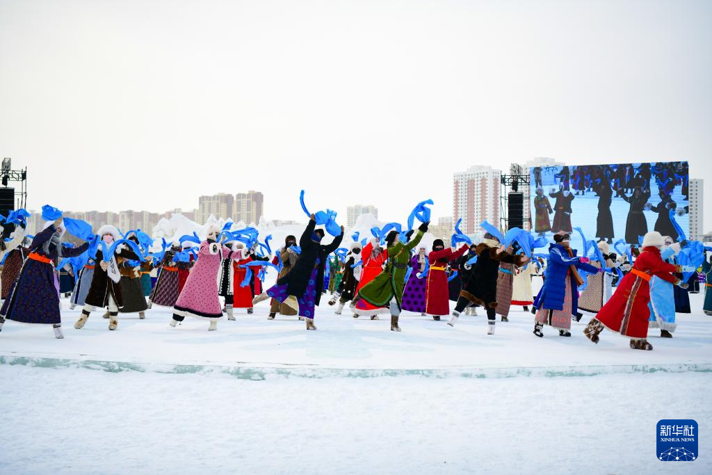 12月20日,参加开幕式彩排的演员在表演。